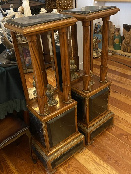 Pięknie zdobione kolumny z początku XX wieku z kryształowymi fazowanymi lustrami.